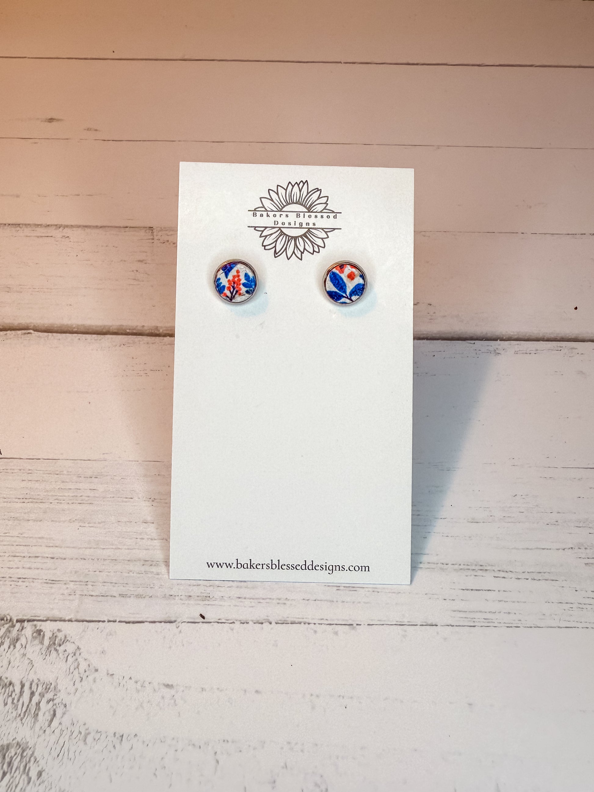 Red, White & Blue Floral Stud Earrings – Lightweight Everyday Jewelry